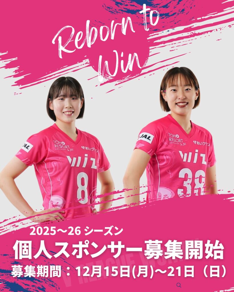2025-26シーズンの辻選手・谷口選手分の個人スポンサー募集を開始いたします。