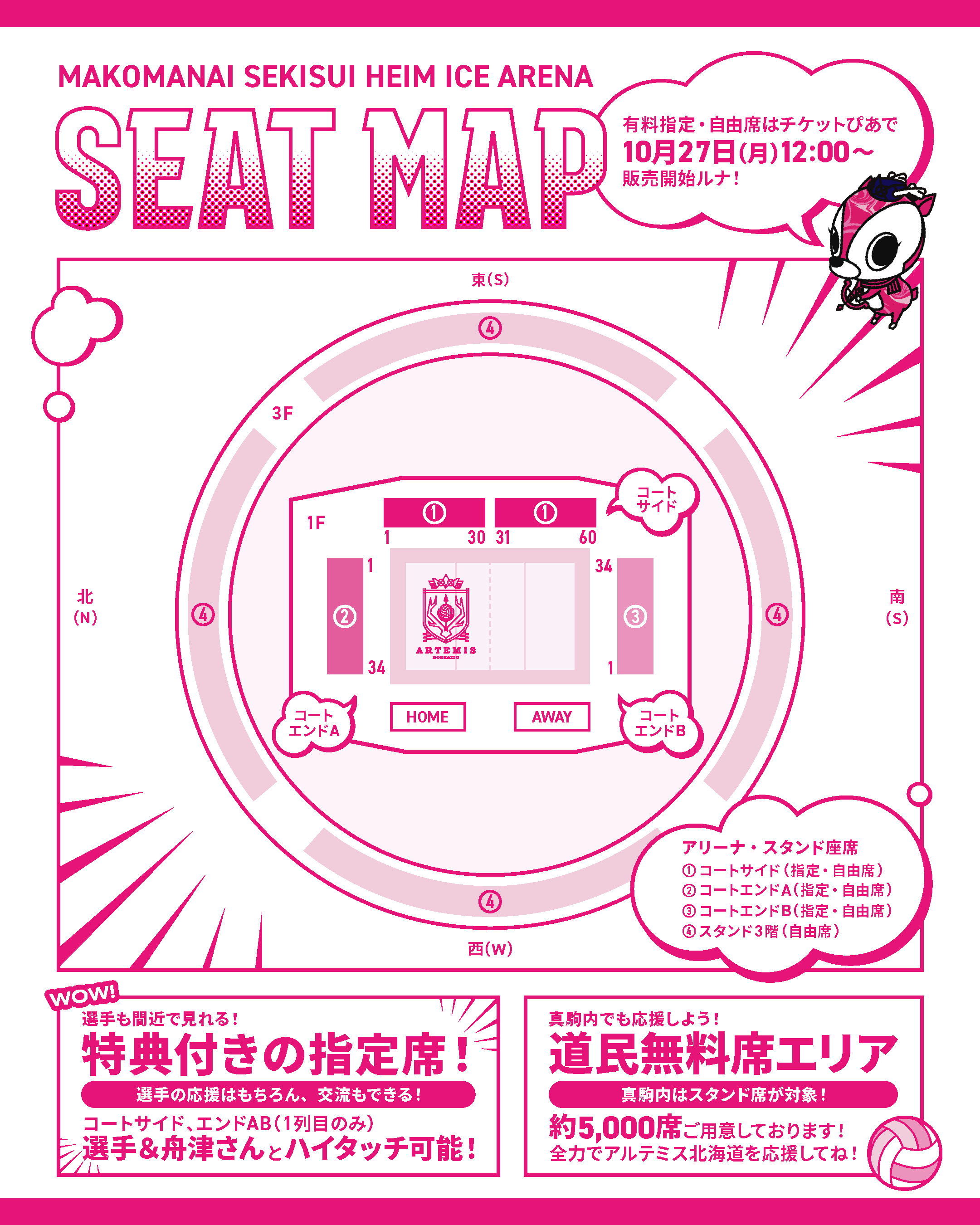 | コートサイド自由席(4・5列目) コートエンドA指定席3列目 コートエンドB指定席3列目 |