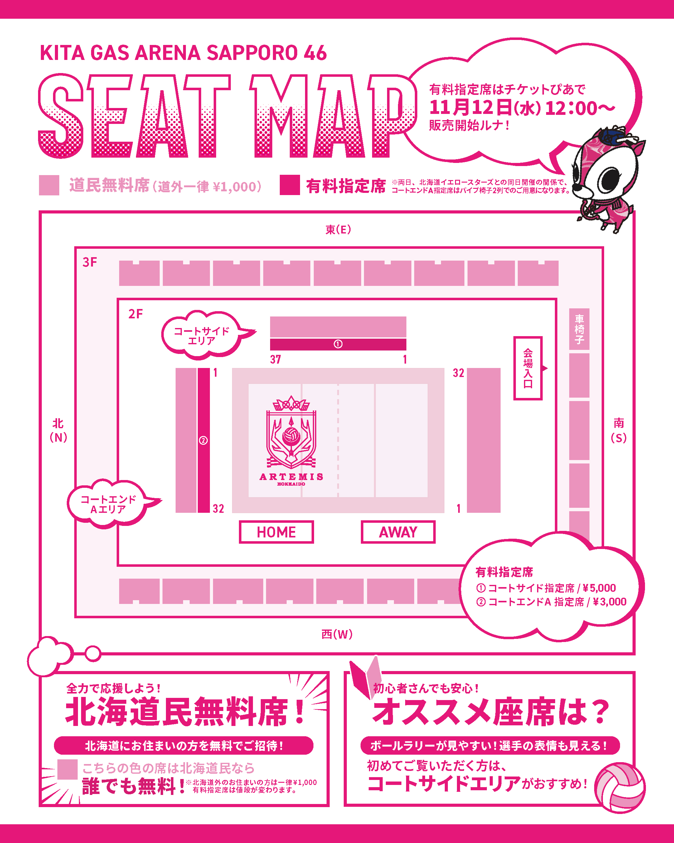 コートエンドA指定席(1・2列目) 一般 3,000円