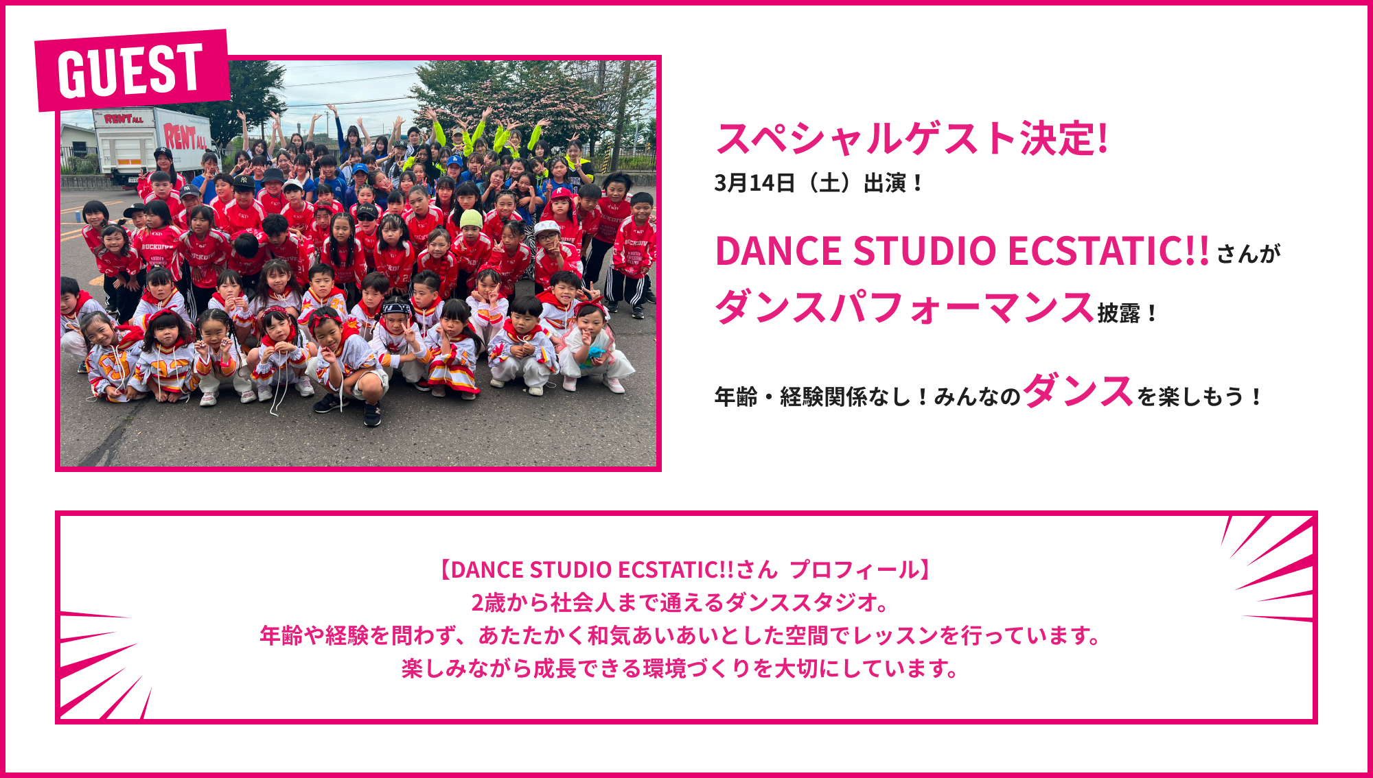 「DANCE STUDIO ECSTATIC!!」によるダンスパフォーマンス 観客参加型イベント「サーブチャレンジ!」 |