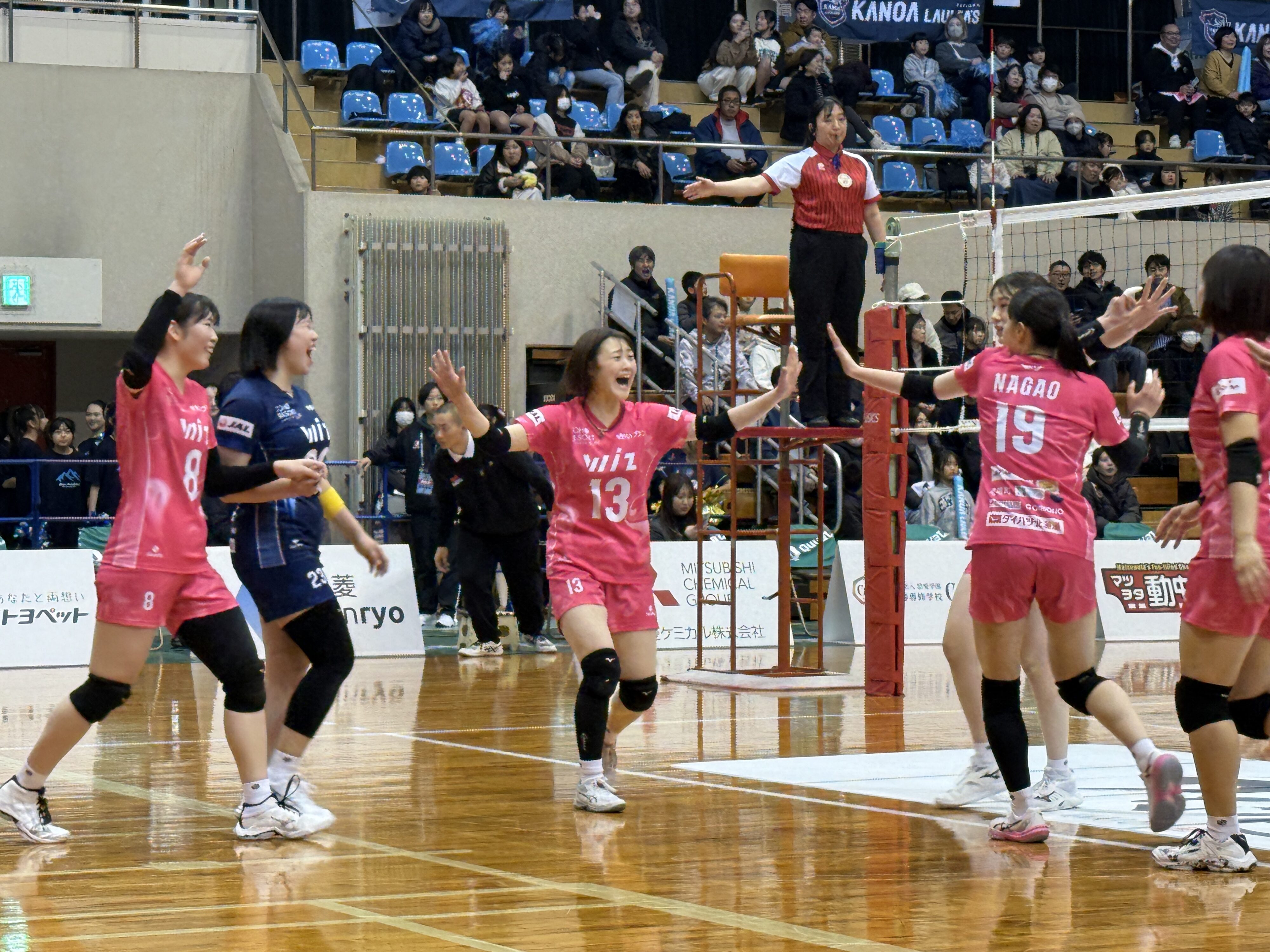 サーブで攻め込み、ハイセットの展開に持ち込むことに成功しましたが、相手の強力なサイドアタッカーに終始苦戦しました。